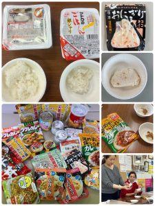 ご飯の食べ比べや、5年保存可能なレトルトカレー・ハンバーグ煮込みなどを試しました。